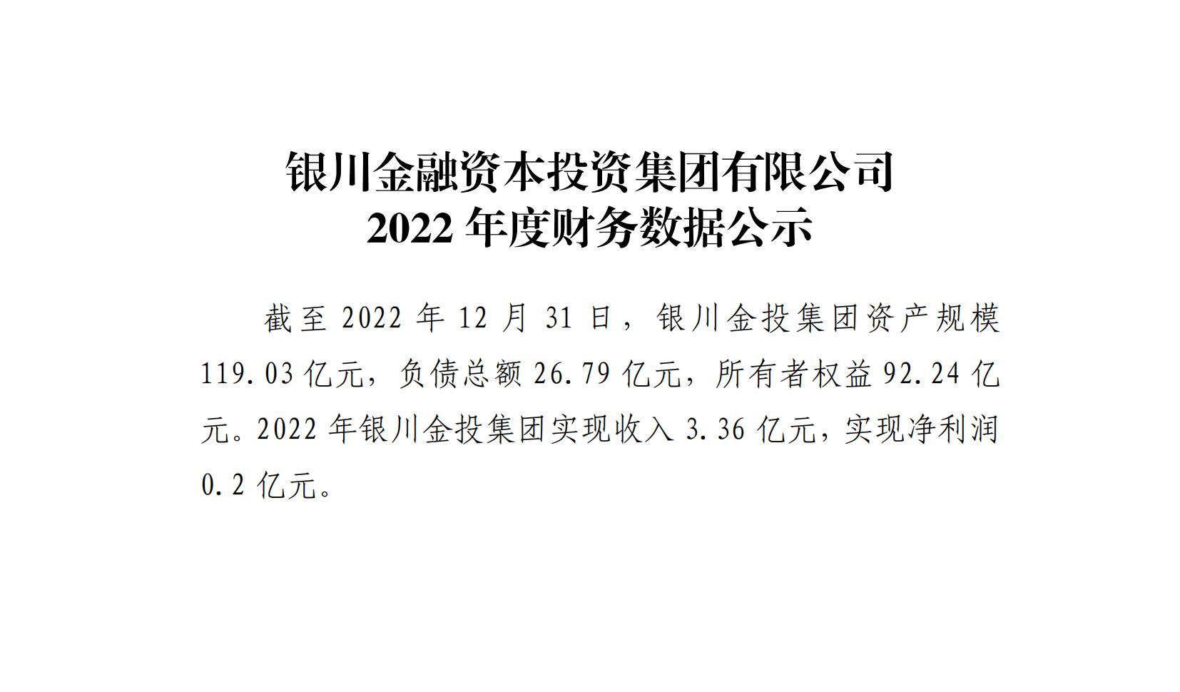 銀川金融資本投資集團(tuán)有限公司2022年度財(cái)務(wù)數(shù)據(jù)公示
